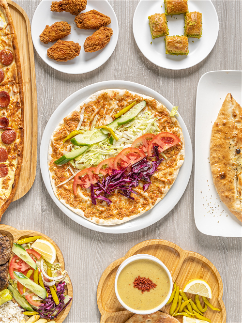 4 seizoens pide met kusbasi, gehakt, jonge kaas en knoflookworst